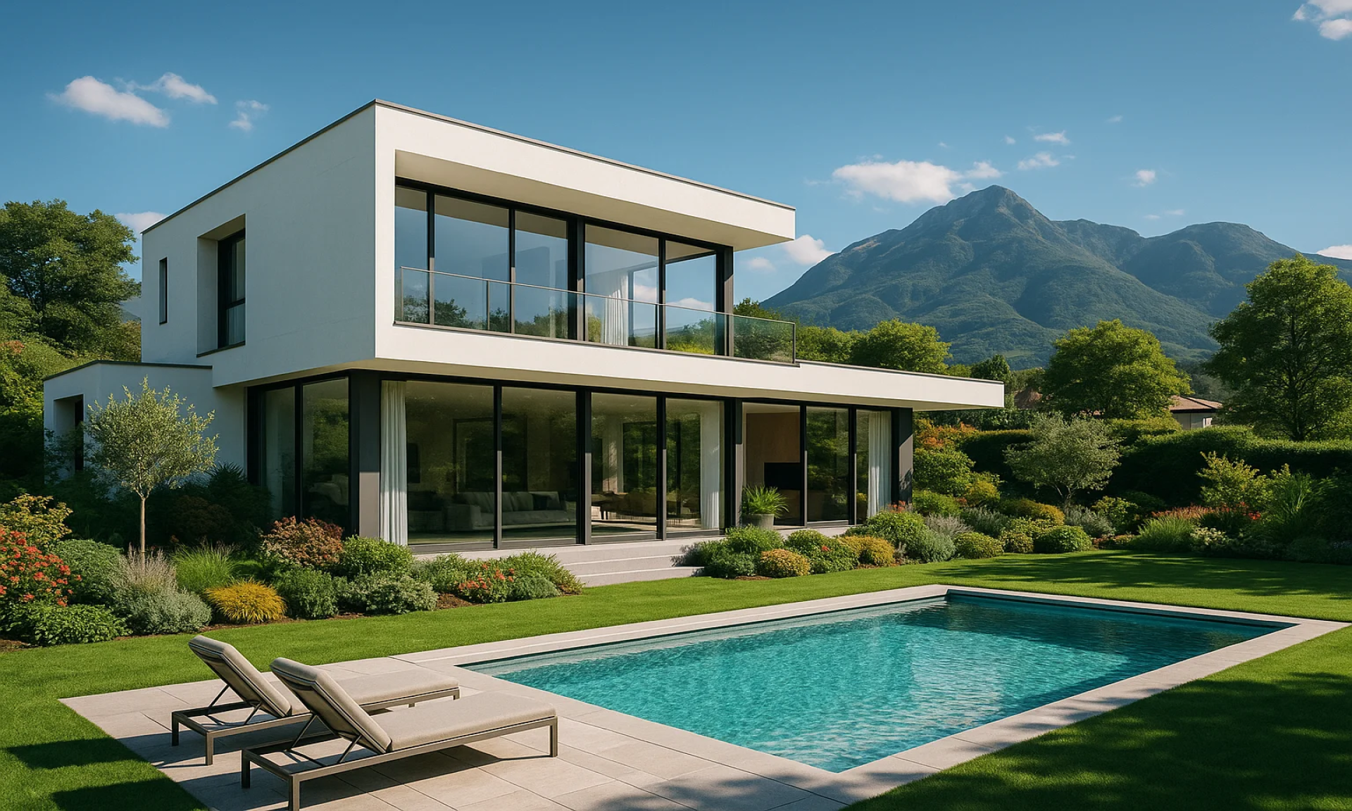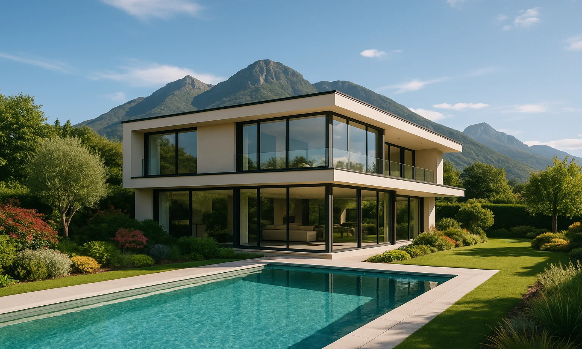 We offer a unique opportunity to invest in the creation of an exclusive residential complex or an individual luxury house — the "Ideal Dream Home". This project combines modern architecture, luxurious design and natural beauty, creating an ideal place to live, relax and invest. Project Description The house is designed with an emphasis on light and space: Modern architecture with clean lines and harmonious shapes Huge panoramic windows letting in sunlight and offering stunning views of the surrounding mountains Spacious layout with an open concept of residential and guest areas An elegant and well-maintained garden with landscaping, cozy alleys and relaxation areas Private swimming pool for comfortable relaxation and entertainment Art Nouveau decor, high-quality materials Location and views The house is located in a picturesque area overlooking the mountains, where the mild warmth of the sun and the fresh mountain air create an atmosphere of privacy and harmony. On a clear sunny day, the sky is a rich blue color that highlights the beauty of the surrounding nature.